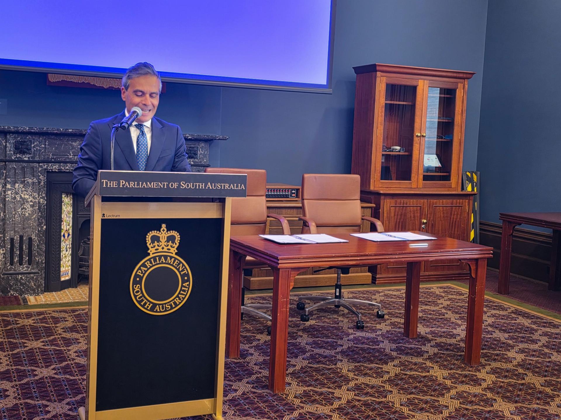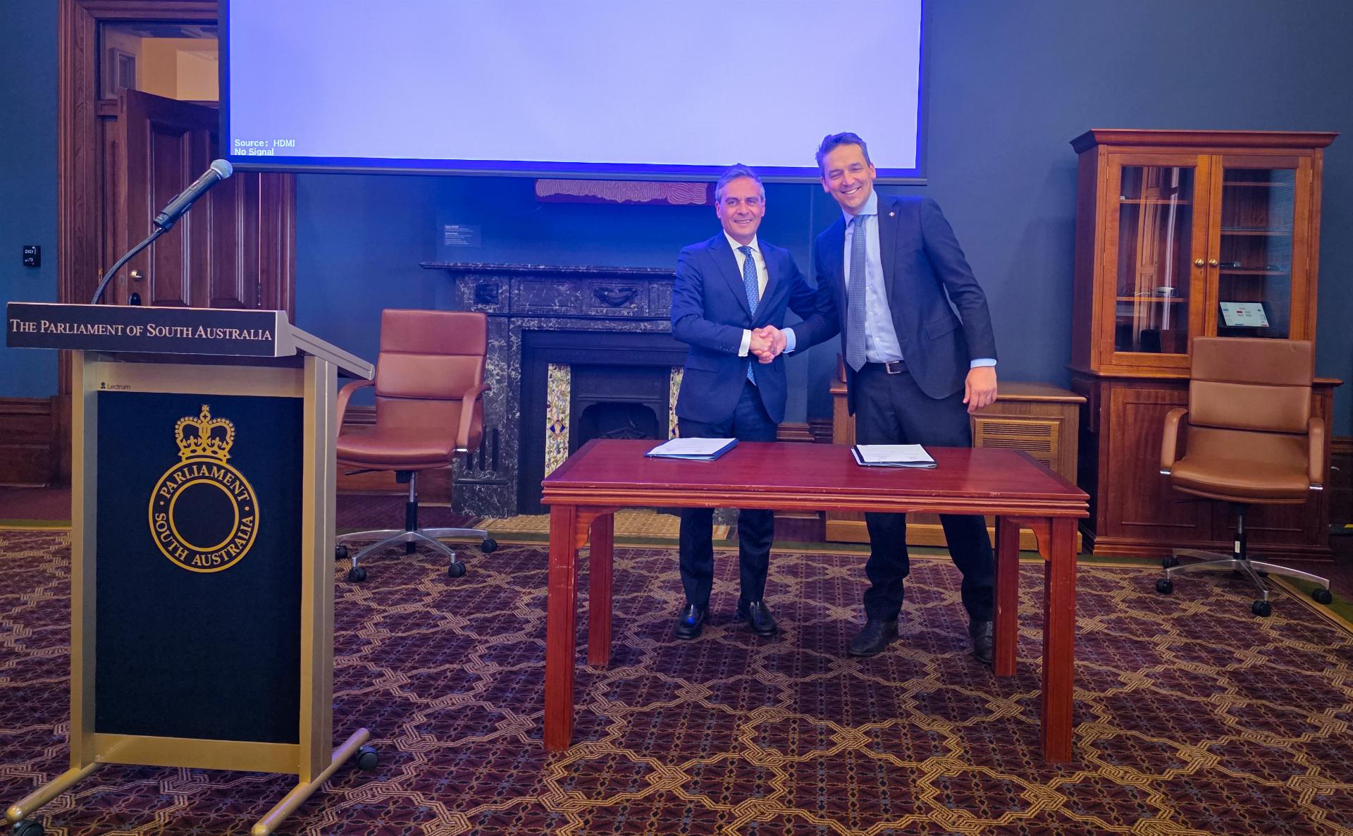 La firma è avvenuta presso la Balcony Room del Parlamento dell’Australia Meridionale, nell’ambito di una cerimonia gentilmente ospitata dal Gruppo di amicizia parlamentare Friends of Italy Parliamentary Group in SA.